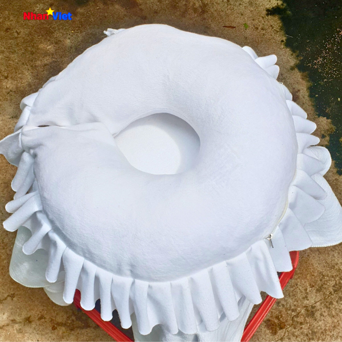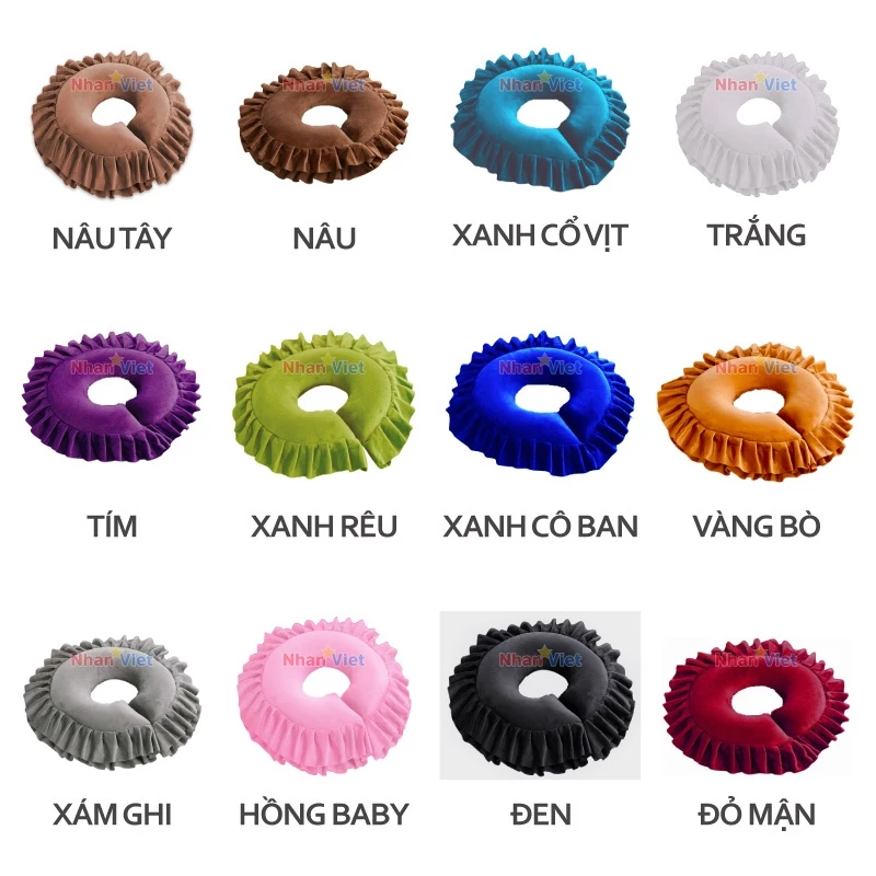 Gối nằm úp mặt massage được thiết kế với phần khoét trung tâm vừa vặn khuôn mặt, giúp giảm áp lực lên trán, mũi và gò má khi khách hàng nằm sấp trong thời gian dài. Thiết kế này hạn chế tình trạng khó thở, tê mặt hay đau cổ, mang lại cảm giác dễ chịu và thư giãn suốt liệu trình massage. Phần bèo xung quanh gối không chỉ tạo điểm nhấn thẩm mỹ mà còn tăng độ êm ái, giúp nâng đỡ đầu và cổ tốt hơn.