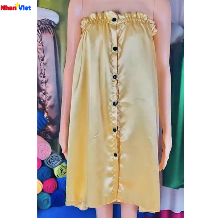 Một trong những mẫu được ưa chuộng hiện nay là áo quây spa có nút, với hệ thống nút bấm chắc chắn, giúp cố định váy tốt hơn trong suốt quá trình trị liệu. Thiết kế này hạn chế xô lệch, đảm bảo sự kín đáo và an toàn cho khách hàng, đặc biệt trong các liệu trình massage body, đá nóng hay xông hơi.